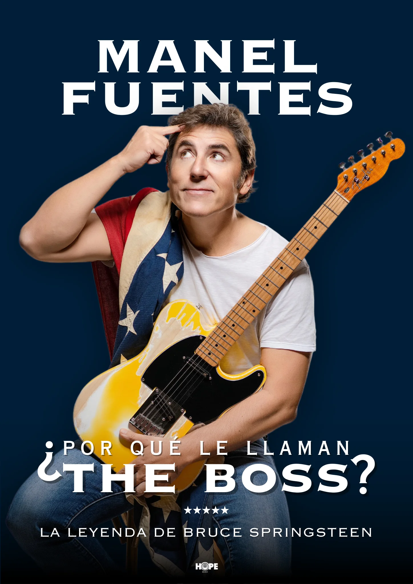 Manel Fuentes, acompañado de su guitarra y armónica, y junto al piano de su inseparable Dani Campos, realiza un recorrido por los temas indispensables de The Boss, que nos harán reflexionar y reír del amor, del trabajo y de la fama.